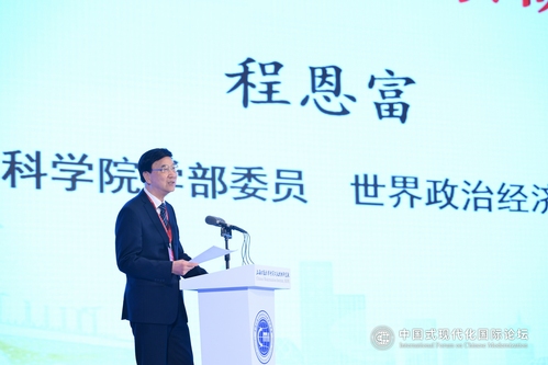 仪式后,论坛进入主旨演讲环节,由上海财经大学常务副校长徐飞主持。程恩富委员,美国纽约市立大学荣休教授、《科学与社会》杂志荣誉主编David Laibman,宁吉喆常委,巴西里约热内卢州立大学副教授Elias Jabbour,逄锦聚副校长,莫斯科大学教授 Aleksandr Buzgalin等六位专家先后发言。他们围绕论坛主题,通过细致的理论溯源、实证分析、国别比较等,多角度解读探讨了中国式现代化道路对西方资本主义模式和苏联计划经济模式的超越,以及对世界上其他国家发展的重要启示和意义。