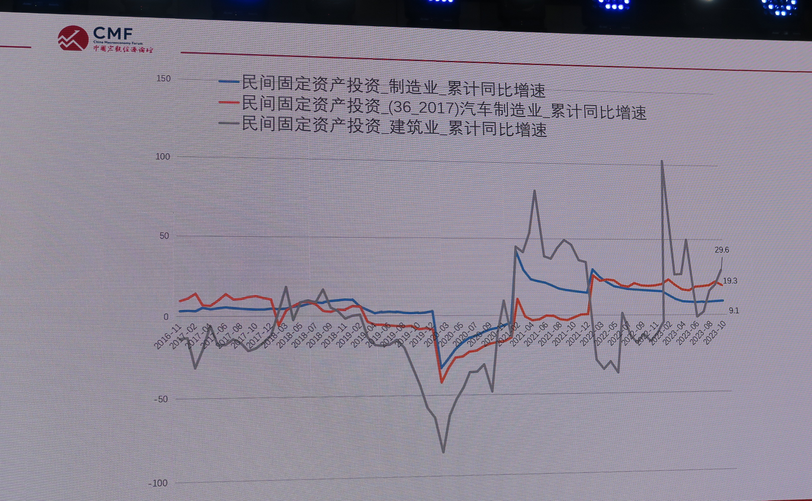 数字显示了不可阻挡的态势。刘元春给出三组数据,民间投资的制造业10月份增速为9.1%,疫情前是7%;汽车制造业,目前增速是19.3%;建筑业投资由于保交楼的大规模上马也有所回升。“这个翻天覆地的变化,不能简单化看待。拖累投资最大的板块是房地产和服务业,“因此,国家已加速在民营企业的融资便利上多做文章,‘两个毫不动摇’不能扭曲,同时还要调整总体的基准利率。”