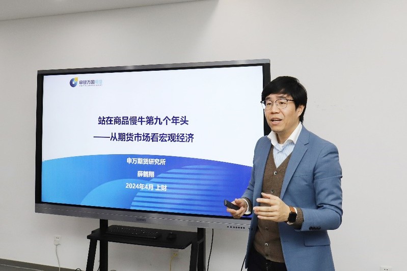 薛鹤翔的主旨演讲主题为《站在商品慢牛第九个年头——从期货市场看宏观经济》,他立足于商品期货市场,从海外经济形势、国内经济形势、大类资产价格走势、商品总量与结构等方面分析2024年一季度宏观经济形势发展。国际层面,由于美国通货膨胀依旧偏高,市场对美联储降息预期减弱。后疫情时代,一方面,美国人均GDP提高,与其他发达经济体差距扩大,主要基于美元相对强势、美国人均实际产出水平较高等因素。另一方面,美国国内财富差距不断扩大,居民超额储蓄耗尽,劳动参与率和失业率有一定程度上升。国内层面,地产行业与宏观经济之间逻辑发生转变。2018年之前,地产驱动宏观,放松地产作为逆周期调节的重要手段。2018年之后,高质量发展逻辑下,宏观决定地产,制造业等产业改善带来宏观经济改善,从而改善居民收入和收入预期,从而对地产景气改善起到正面作用。中国经济结构持续调整和优化。期货市场上,与地产行业紧密相关的螺纹钢价格走弱,而铜、铝等有色金属上涨反应了以新能源、新能源汽车为代表的新兴产业快速发展,这些品种的下游需求与地产关联性较低。总体上,中国2024年一季度5.3%的GDP增速符合预期,未来政策或可适度关注名义GDP增速和通胀水平,实现总体价格水平温和上升有利于经济复苏和微观主体景气改善。大类资产价格层面,2023年底以来资产价格迅速对美联储降息预期作反应,美国高科技公司股价、黄金价格不断攀升,出现资产价格抢跑现象。大宗商品方面,2015年以来,大宗商品一直处于供给侧结构性慢牛格局中,能源体系结构持续调整,铜、铝等有色金属受到新能源、新能源汽车需求增长的支撑,大宗商品领域有一系列品种可用于跟踪和研判中国能源体系的重构。总之,大宗商品无论是在总量层面还是在结构层面均可为宏观经济分析、宏观和产业决策提供越来越多有益的信息和逻辑。