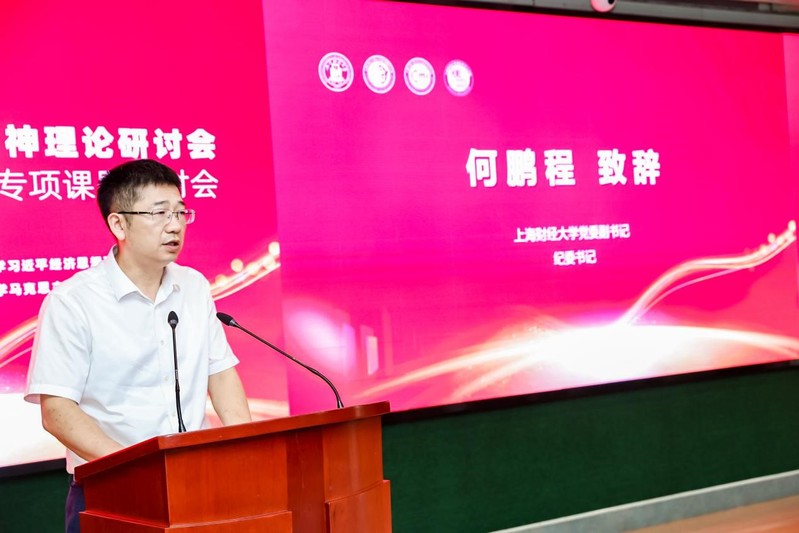 上海财经大学党委副书记、纪委书记何鹏程致开幕辞。何鹏程副书记指出,党的二十届三中全会刚刚落幕,上海财经大学在此时召开全国性理论研讨会,不仅恰逢其时,而且使命重大、意义非凡。近年来上海财经大学锚定党和国家发展重大战略,结合自身学科特色,设立了“一区两院”的工作格局,以习近平经济思想为指导,聚焦国家和地方重大发展战略和前瞻性问题,开展高水平理论研究、课程建设、决策咨询、社会服务、学术论坛,取得良好效果;马克思主义学院在新时代不断推进党的创新理论体系化学理化研究阐释,取得丰硕成果,推动了马克思主义理论学科建设的高质量发展,为全面深化改革、推进中国式现代化做出独特的“上财贡献”。