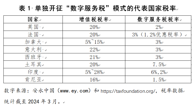 1.单独开征数字服务税国家的实践。